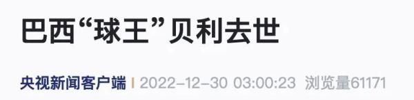 当地时间12月29日,巴西圣保罗市阿尔伯特·爱因斯坦医院发布公告称,巴西知名运动员、“球王”贝利因结肠癌引发多器官衰竭,于当天15时27分去世,终年82岁。贝利女儿凯丽·纳西门托在社交媒体发文:“我们的一切都归功于你,我们都爱你。”