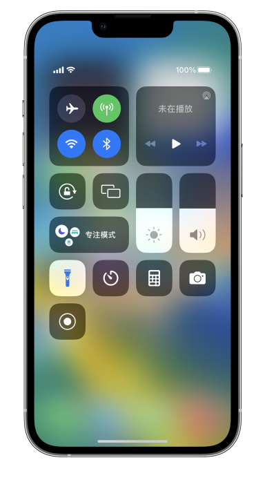 在iPhone 14的设置中,在控制中心中添加“手电筒”功能,然后打开控制中心,按手电筒图标打开手电筒。当手电筒开启时,可以再次按下手电筒图标关闭。