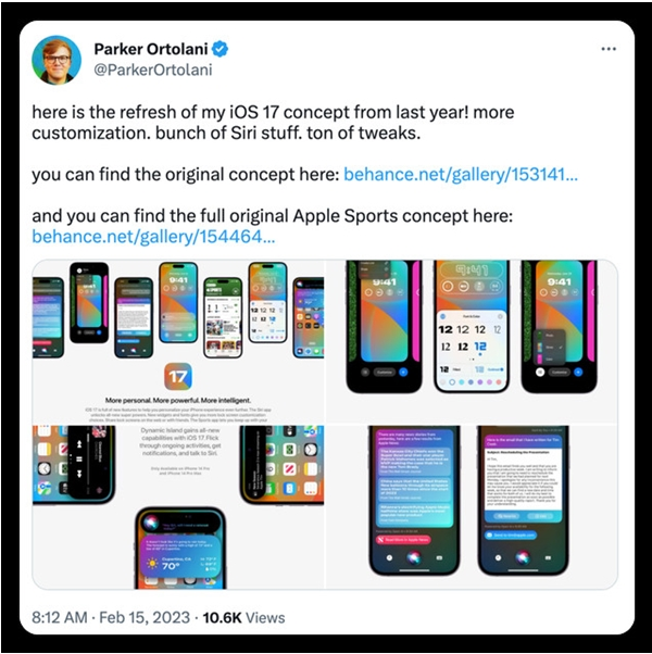 Paker?Ortolani称,随着目前大热人工智能ChatGPT的兴起,苹果也许会在Siri这一老牌功能上下功夫,以让Siri变得更加智能、更方便使用。因此,苹果可能会在iOS?17中将Siri与灵动岛结合,让Siri以灵动岛的形式存在,用户可以在不影响其他进程的前提下,在灵动岛区域与Siri互动,获取更多可用的信息。