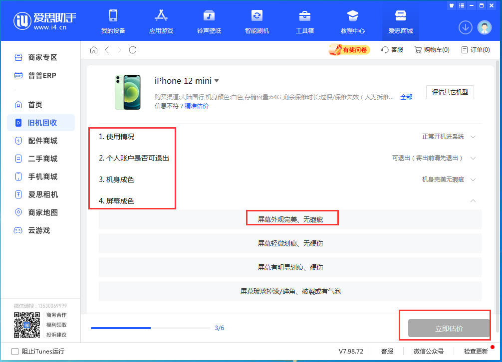 用户可以使用爱思回收免费给自己的设备进行估价。