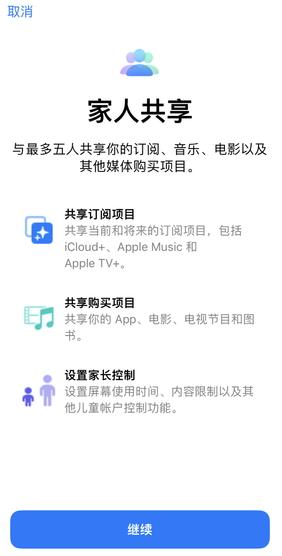 打开 iPhone 设置-Apple ID,轻点“家人共享”,即可根据提示开启这项功能。