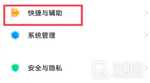 2、点击快捷与辅助选项