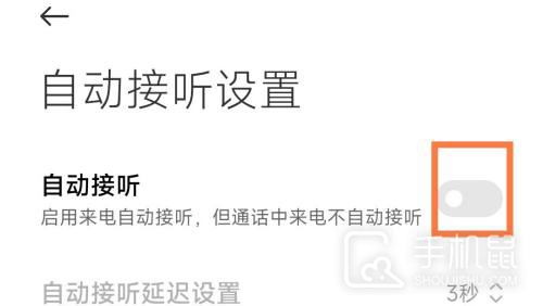 4、在自动接听设置中找到自动接听按钮,并点击右边的开关