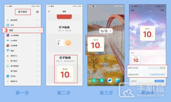 (2)经典桌面中,长按桌面空白处进入桌面编辑--原子组件--贴纸--长按“日子贴纸”拖动添加到桌面,再点击该组件--设置目标日期即可。