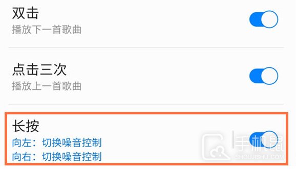 4、最后在“长按”中,选择“切换噪音控制”,这样就可以在耳机上触摸来开启降噪模式了。