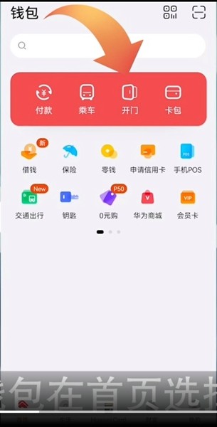 1、打开华为钱包在首页选择开门选项进入。