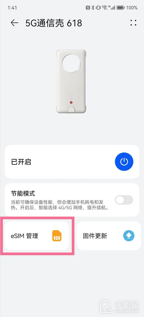 2、打开智慧生活App,点击5G通信壳设备卡片,进入eSIM管理,立即开通eSIM,选择要开通的SIM卡即可。