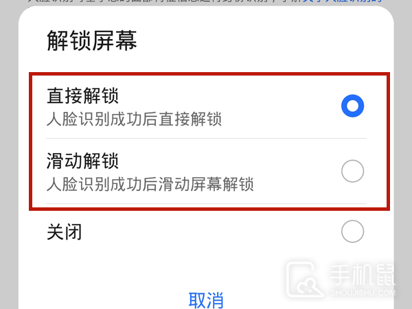4、点击解锁屏幕,勾选直接解锁,或者滑动解锁即可。
