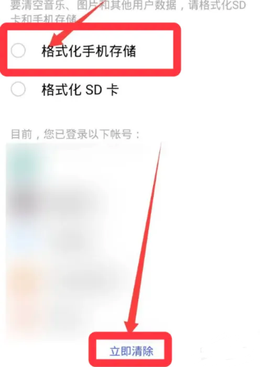 4、勾选格式化手机存储