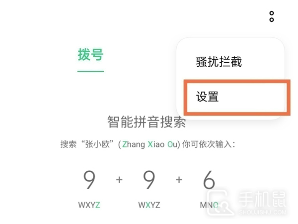 1、在桌面找到并打开电话,点击右上角的两个点,点击设置。