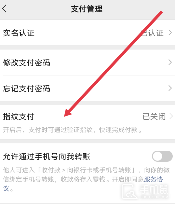 3、在支付管理界面点击【指纹支付】