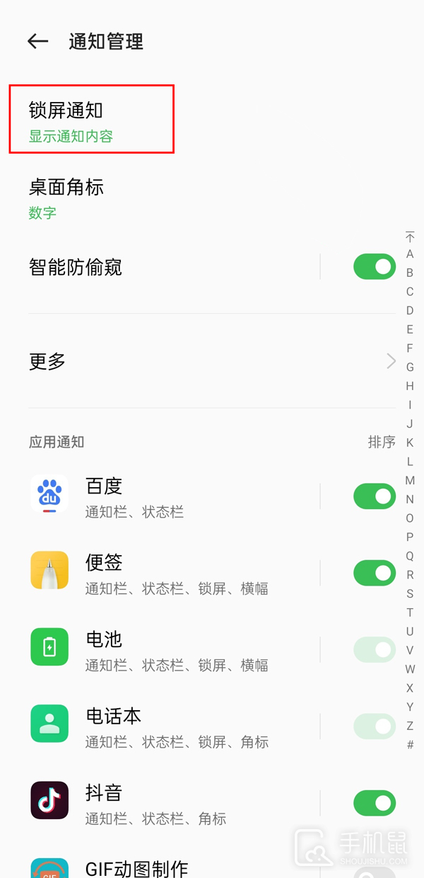 3、点击【锁屏通知】,并关闭允许通知即可。