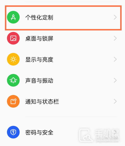 首先,打开手机【设置】,点击个性化定制