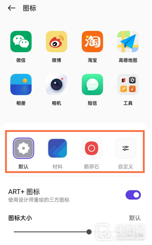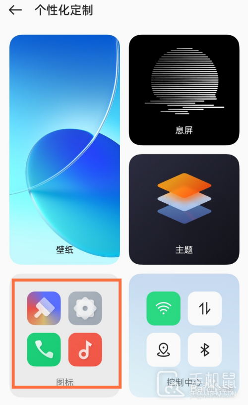 然后,在【个性化定制】中点击图标