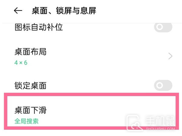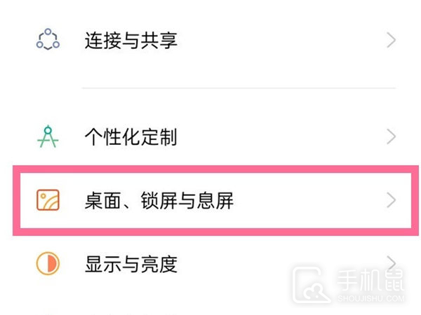 1、打开手机设置,点击【 桌面 、 锁屏 与息屏】选项。