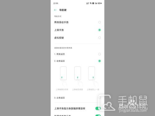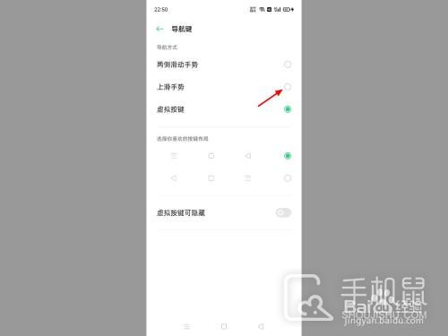 在导航键界面,选择上滑手势。