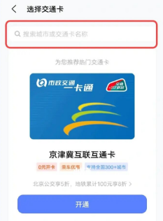 5、搜索你所在城市或交通卡名称,然后点添加卡片。
