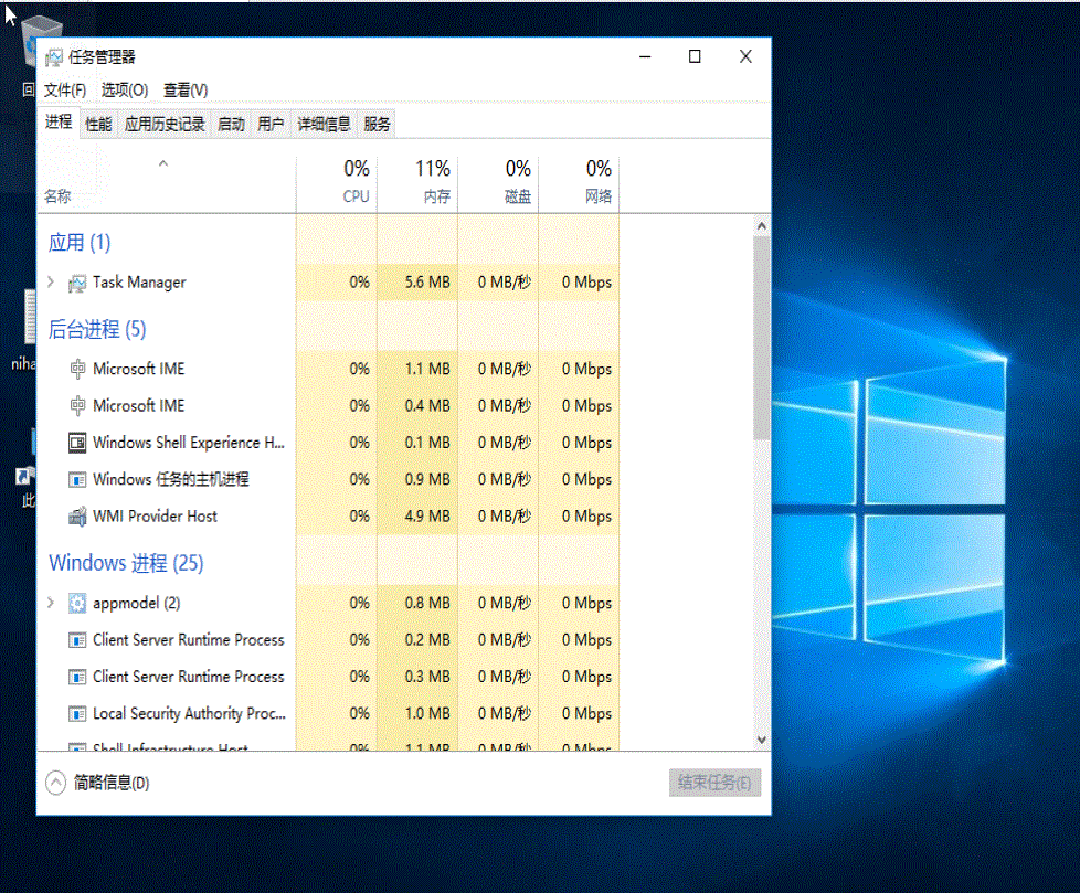 待机下,几乎保持0%cpu , 0%磁盘 ,0%GPU。