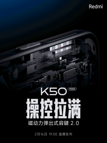 另一个被Redmi K50电竞版保留的机身模块是实体游戏肩键,对比市面上主流的触摸式“软肩键”,「弹出式肩键2.0」能带来操控更加出色且准确性更高操作手感,让用户随时随地通过肩键实现四指操作。