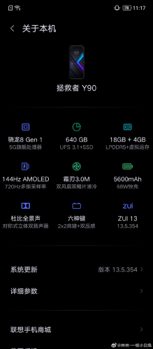 据联想拯救者产品总监@林林-一枝小白兔 最新在微博上晒出的配置截图显示,与此前曝光的消息基本一致,该机区别于其他机型的最突出卖点就是将搭载640GB的超大存储空间,其中包括UFS 3.1和SSD两种硬件组成,这个规格可以说是手机行业史无前例的最强组合之一。不过对于此配置,这位产品总监在下方的评论中却一语惊人回复网友称:“512+128SSD 主要用来吹牛的,不必过于看重这玩意”,可以说是相当耿直了。虽然一般场景确实用不到如此大的空间,但这一配置确实会在游戏安装/启动、场景切换等方面带来不小的提升。