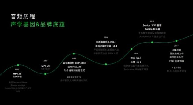 OPPO在声学领域的探索已经有18年,并积累了不少独门绝活。例如蓝光时代,OPPO就研发了时钟重建技术来解决高速信号传输带来的抖晃和失真,并在电源和电路方面推出降噪和降纹波设计以及纯模拟的低音增强电路等等,实现「殿堂级音质表现」。在耳机市场,OPPO推出的Hi-Fi专业耳机PM-1,同样通过技术创新,运用螺旋图案的平面铝制导体将平面振膜的灵敏度提升到102dB,达到全球最高水准。