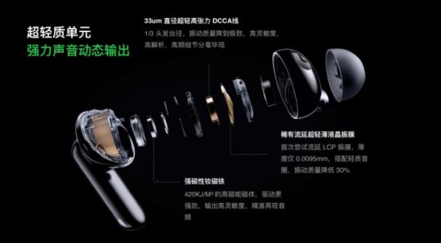 OPPO Enco X2采用0.0095mm稀有流延液晶振膜