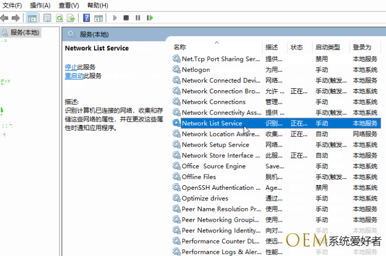 2.找到【Network List Service】服务,右键选中点击【属性】,