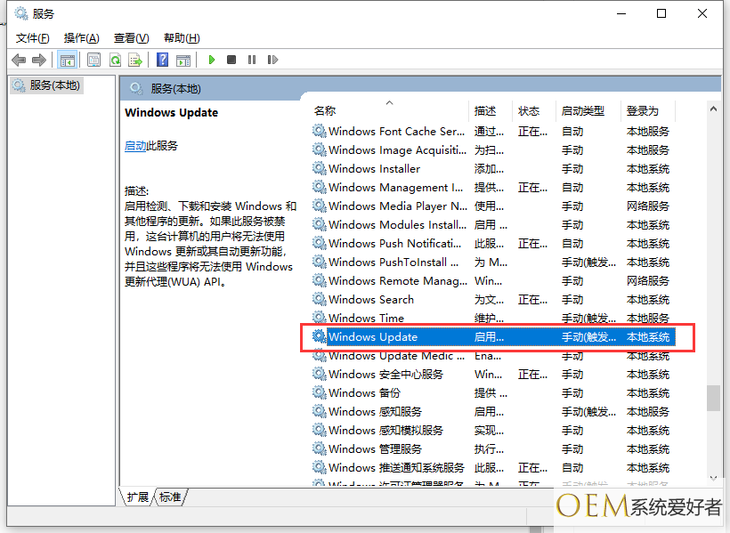 4、双击windows update服务,进入以下界面