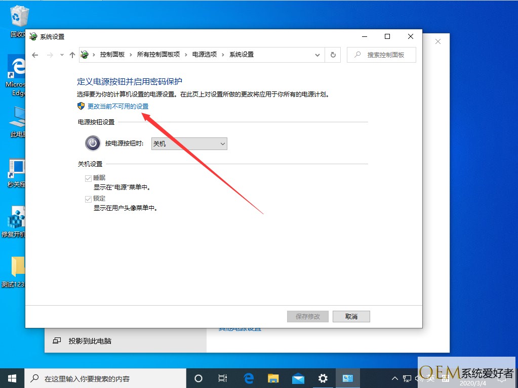 待新窗口弹出后,选择“更改当前不可用的设置”;