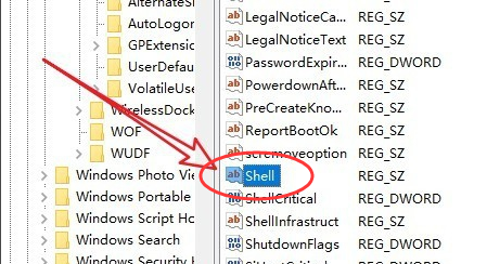 4、接着在注册表编辑器界面的右侧找到“Shell”选项并双击打开,进入下一步。
