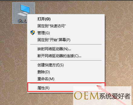 1、在桌面上“此电脑”鼠标右键,弹出的快捷菜单单击“属性”命令。