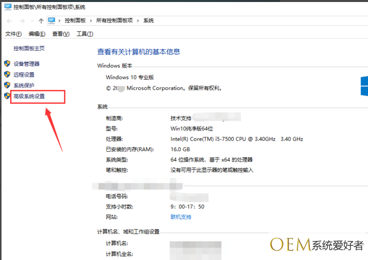 2、然后,点击左侧的【高级系统设置】。