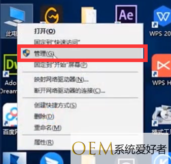 1、右击此电脑,点击管理。