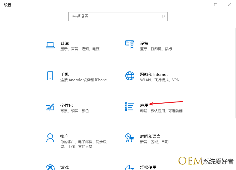 1、首先我们Win+i打开windows设置,点击应用按钮。