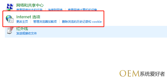3、接下来我们需要点击Internet选项。