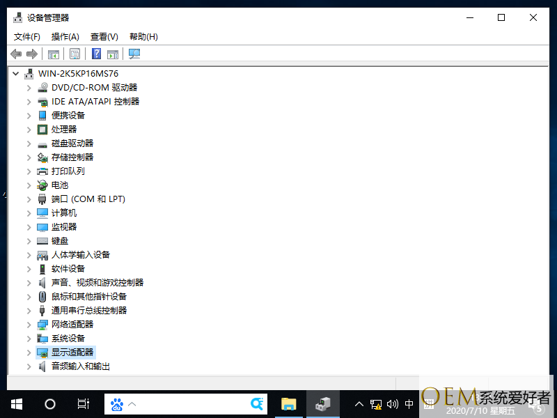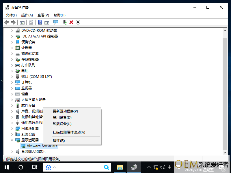 2、进入后点击显示适配器展开,右击适配器选择扫描检测硬件改动。