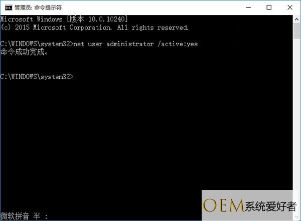 1、激活管理员账户Administrator: 以管理员身份运行CMD,执行 net user administrator /active:yes。