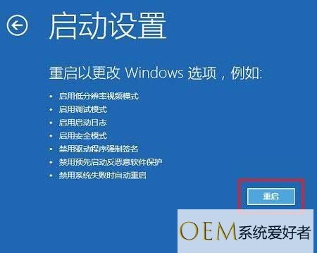 7、在启动设置界面,找到并点击重启。
