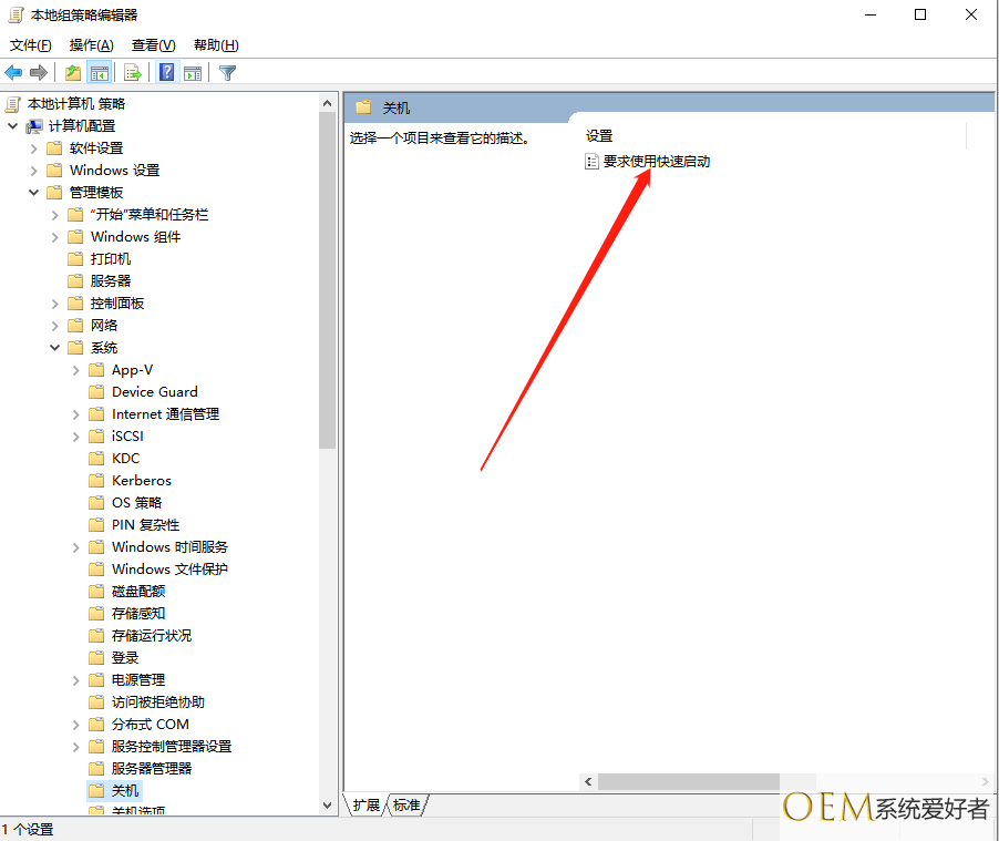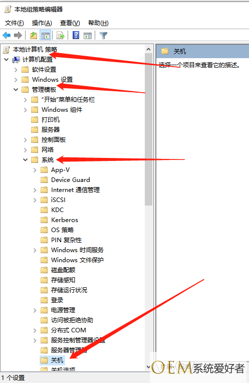 2、依次展开“计算机配置—管理模板—系统—关机”下一步。
