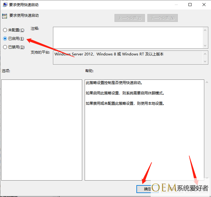 4、选择“已启用”,然后依次点击“应用—确定”重启电脑即可。