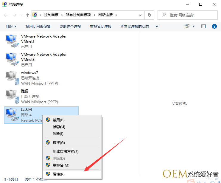 2、进入网络列表界面,找到当前正在连接的网络,右键点击选择--属性--;