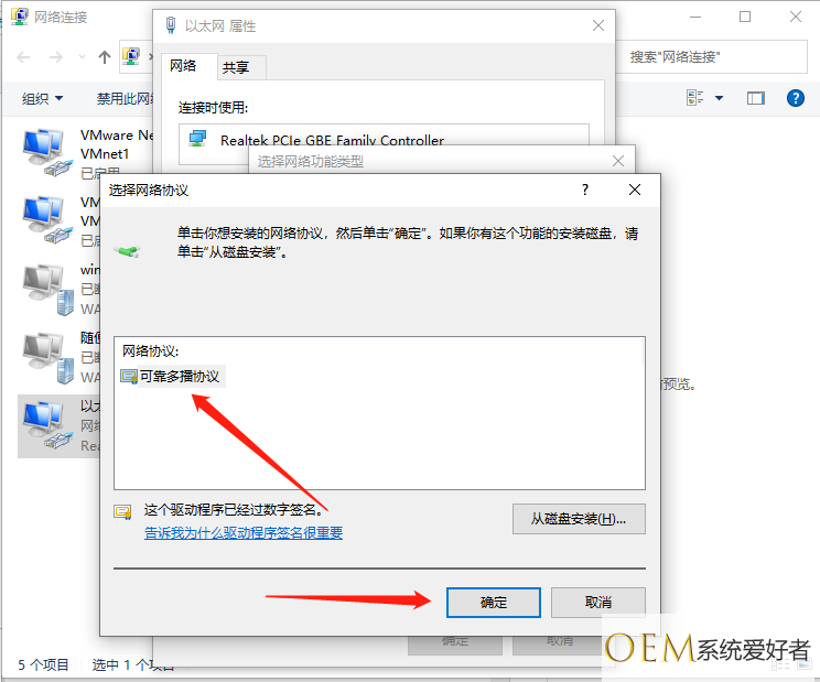 5、然后选择--可靠多播协议--,点击右下角--确定--,安装成功问题解决。