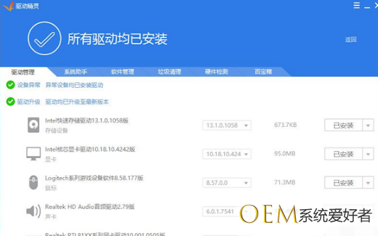 2、用驱动精灵更新主板、显卡、声卡、网卡驱动。
