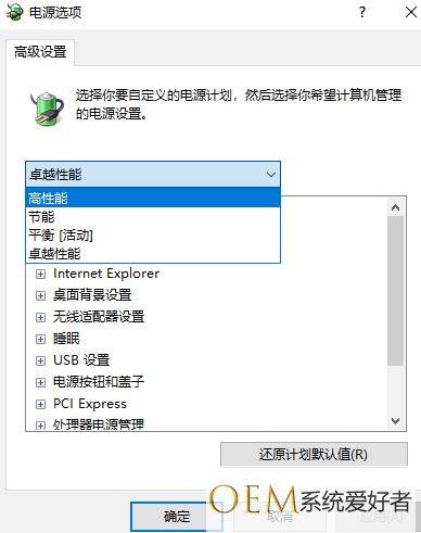 5、在下拉框选择高性能,点击确定保存即可。