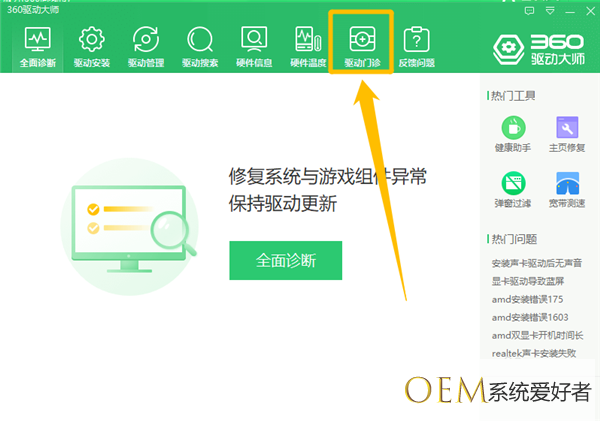 在“360驱动大师”中,点击上方的“驱动门诊”图标。