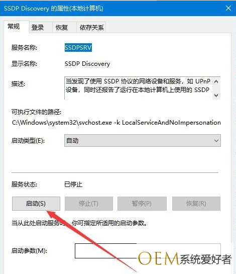 4、右键点击SSDP Discovery服务项,在弹出菜单中选择“属性”菜单项。