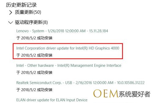 第一种,直接到“历史更新记录”中查看。不过,这个方法对于许多电脑小白来说,显然有点不切实际,因为他们根本分不清哪些更新是英特尔核芯显卡的驱动。