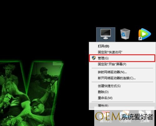 第二种,在桌面“此电脑”的图标处右击,然后在弹出的菜单中选择“管理”。