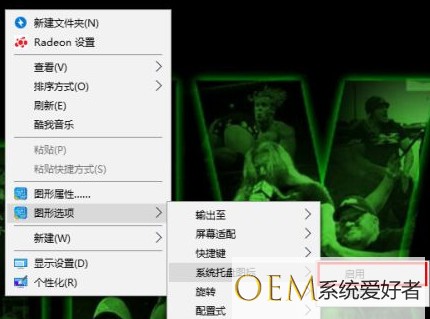 2、然后在弹出的菜单中,点击“图形选项”-“系统托盘图标”-“启用”。