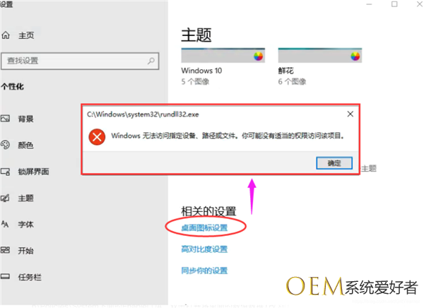 然后发现桌面图标设置可以打开了。类似 系统提示Windows无法访问指定设备、路径或文件的问题都可以试试。